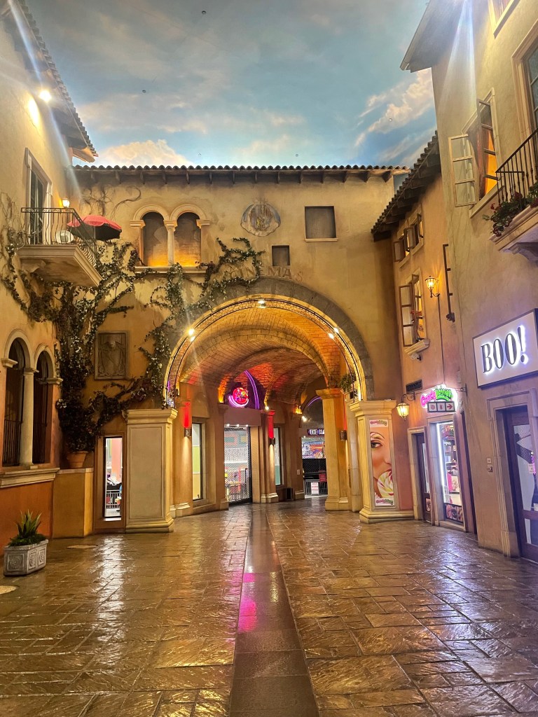 En attendant, j’en ai pris de cette Italie artificielle qui sent le désinfectant et où les bistros et établissements de restauration rapide, le casino, les cinémas, les boutiques et centres de divertissements rivalisent pour attirer une rare clientèle matinale.